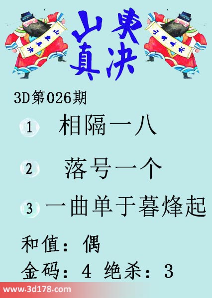 福彩3d第20026期山东真诀图如下所示: