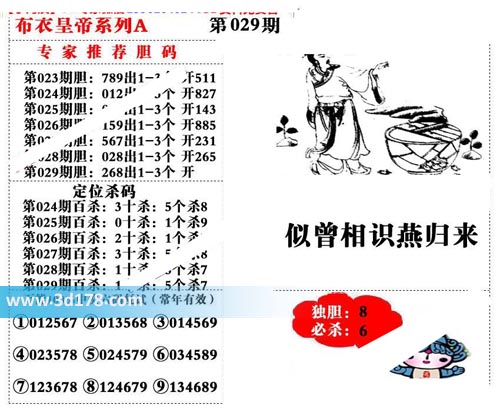 福彩3d第2020029期布衣皇帝A版布衣专家独家推荐: