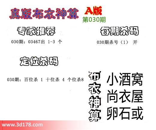 3d之家布衣图库之布衣神算图第2020030期详解: