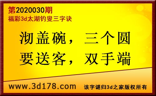 3d第20030太湖字谜:沏盖碗,三个圆,要送客,双手端