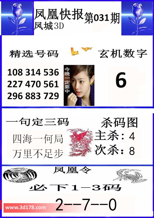 福彩3d凤凰快报图第20031期精选号码推荐: