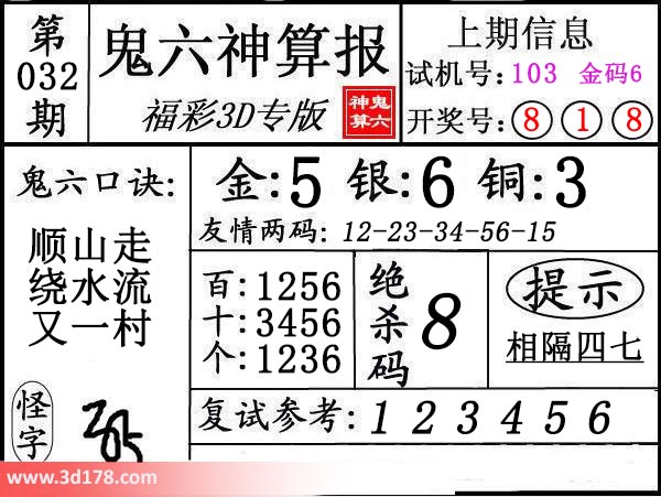 3d第20032期鬼六神算报为您推荐鬼六口诀:
