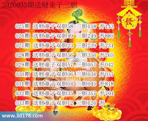 下面我们一起来回顾一下3d之家胆码图送财童子三胆近期推荐详情: