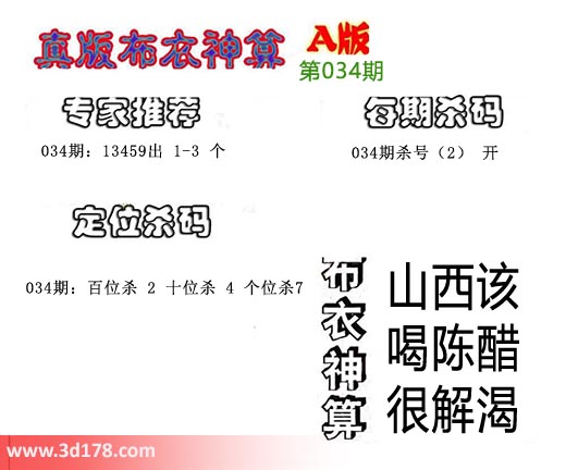 3d之家布衣图库之布衣神算图第2020034期详解:
