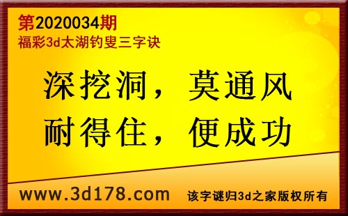 3d第20034太湖字谜:深挖洞,莫通风,耐得住,便成功