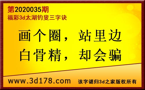 3d第20035太湖字谜:画个圈,站里边,白骨精,却会骗