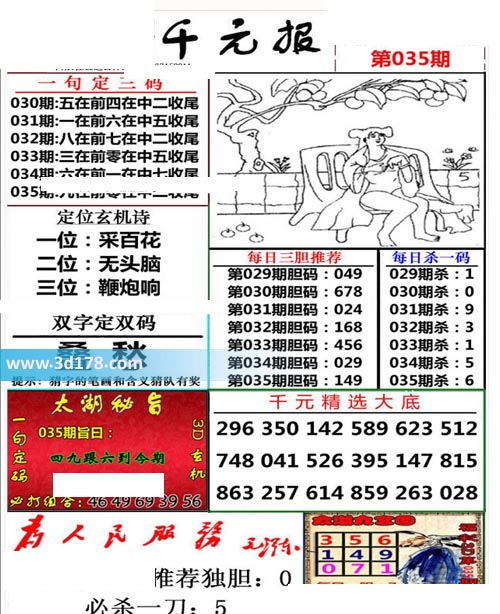 福彩3d第2020035期布衣千元报图详情分析如下: