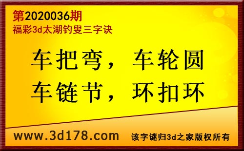 3d第20036太湖字谜:车把弯,车轮圆,车链节,环扣环