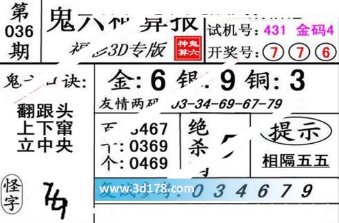 3d第20036期鬼六神算报为您推荐鬼六口诀:
