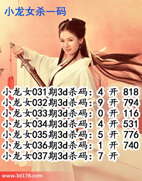 小龙女032期3d杀码:9 开 794