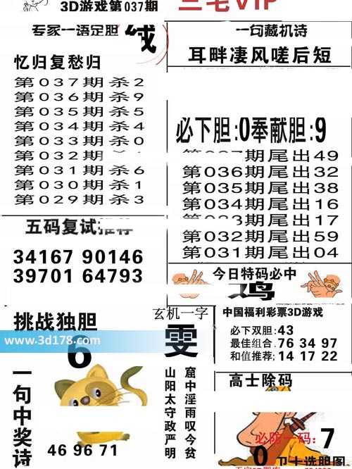福彩3d第2020037期三毛VIP: