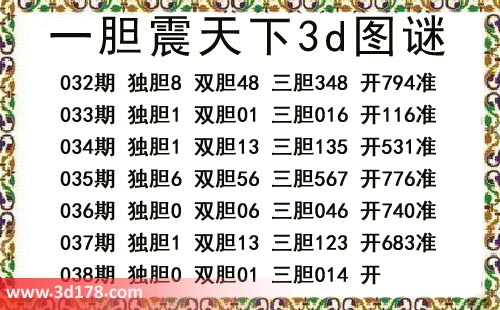 一胆震天下三胆图库由3d之家3d图库频道原创,仅供彩民参考,温馨提供。