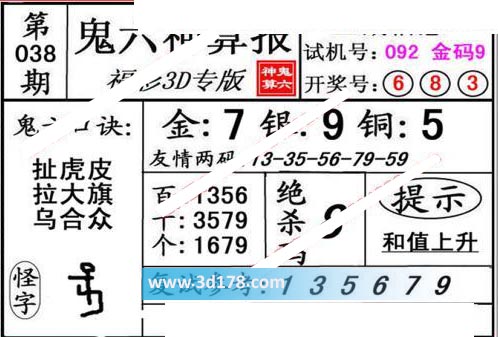 3d第20038期鬼六神算报为您推荐鬼六口诀: