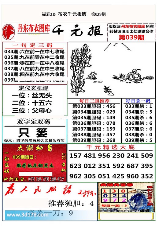 福彩3d第2020039期布衣千元报图详情分析如下: