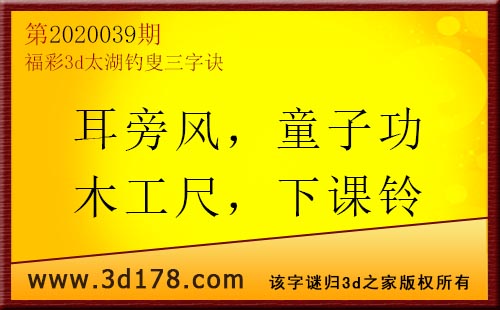 3d第20039太湖字谜:耳旁风,童子功,木工尺,下课铃