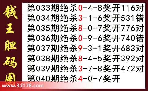 近期3d钱王杀码具体详情: