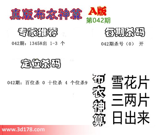 3d之家布衣图库之布衣神算图第2020041期详解: