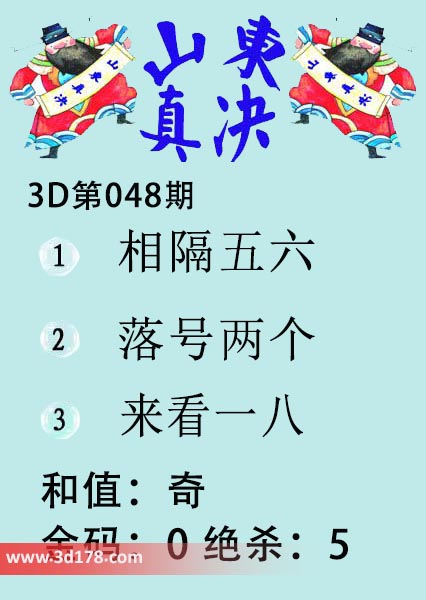 福彩3d第20048期山东真诀图如下所示: