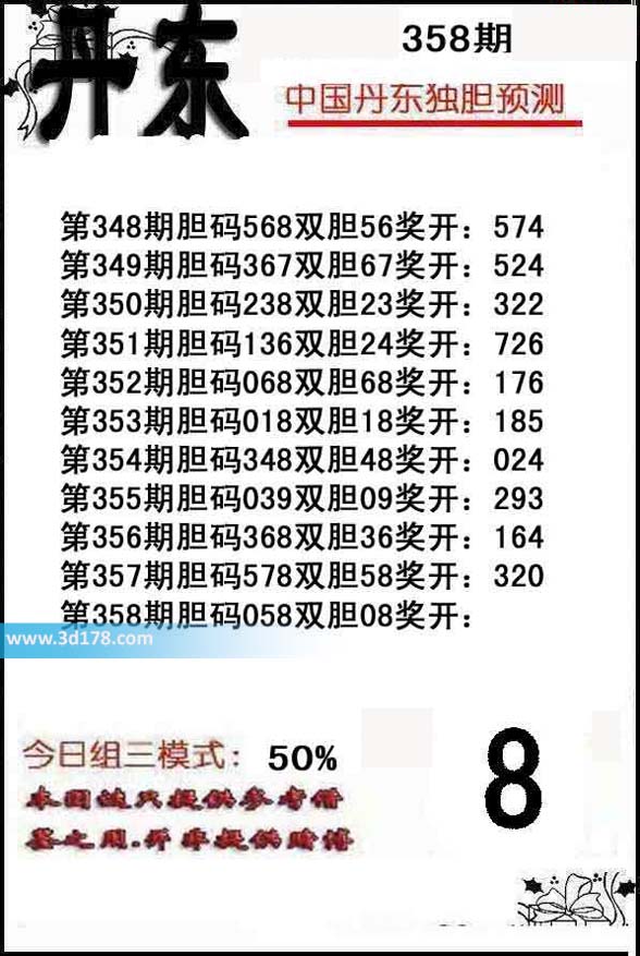 第357期 胆码578 双胆 58 奖开:320