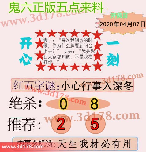 福彩3d第2020049期鬼六五点来料: