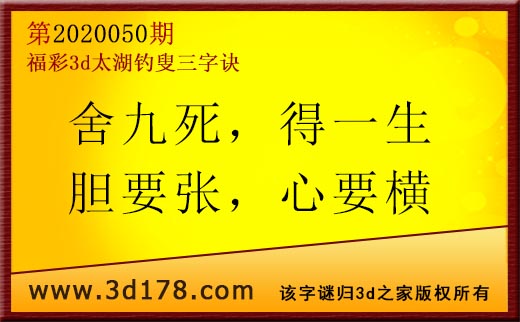 3d第20050太湖字谜:舍九死,得一生,胆要张,心要横