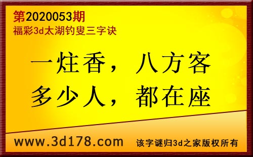 3d第20053太湖字谜:一炷香,八方客,多少人,都在座