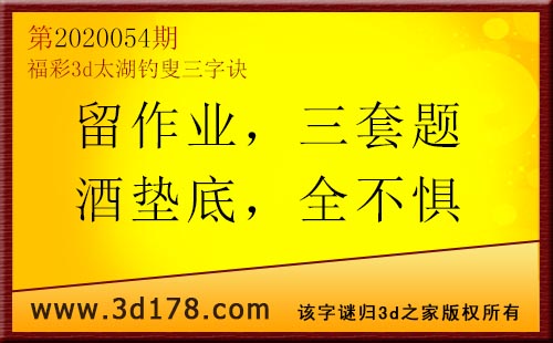 3d第20054太湖字谜:留作业,三套题,酒垫底,全不惧
