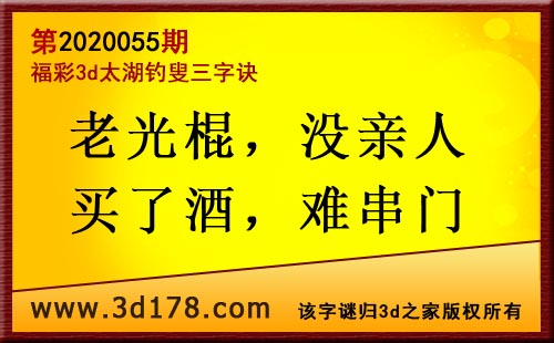 3d第20055太湖字谜:老光棍,没亲人,买了酒,难串门