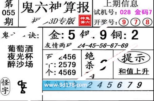 3d第20055期鬼六神算报为您推荐鬼六口诀: