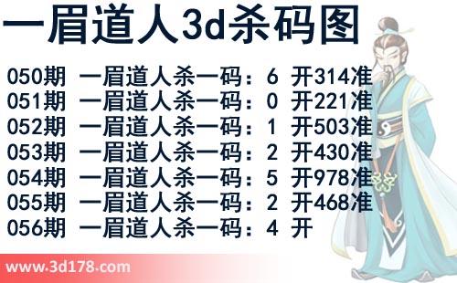 该一眉道人3d杀码图由3d之家3d图库频道原创,仅供彩民参考,温馨提供。