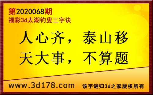 3d第20068太湖字谜:人心齐,泰山移,天大事,不算题