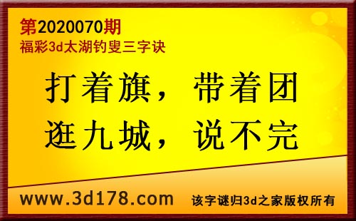 3d第20070太湖字谜:打着旗,带着团,逛九城,说不完