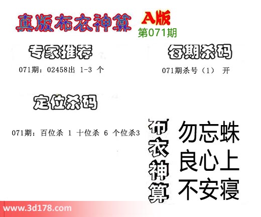 3d之家布衣图库之布衣神算图第2020071期详解: