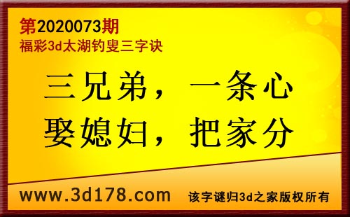 3d第20073太湖字谜:三兄弟,一条心,娶媳妇,把家分