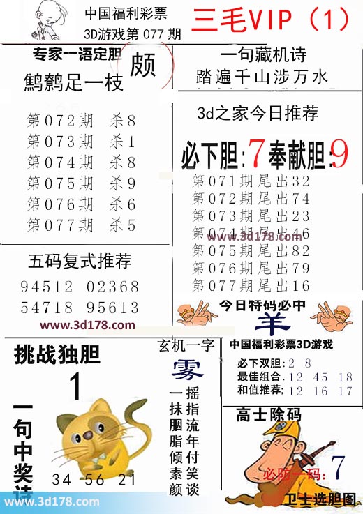 3d第2020077期三毛VIP详解: