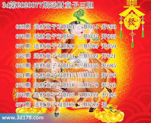 下面我们一起来回顾一下3d之家胆码图送财童子三胆近期推荐详情: