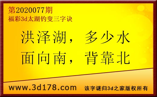 3d第20077太湖字谜:洪泽湖,多少水,面向南,背靠北