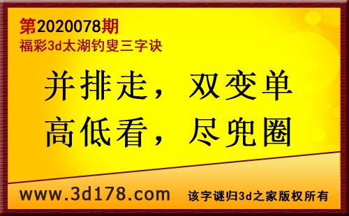 3d第20078太湖字谜:并排走,双变单,高低看,尽兜圈