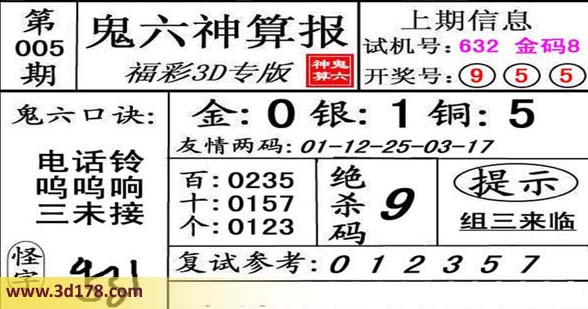 福彩3d之家第2014005期鬼六神算报