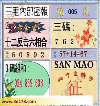 福彩3d之家第2014005期三毛内部密报图