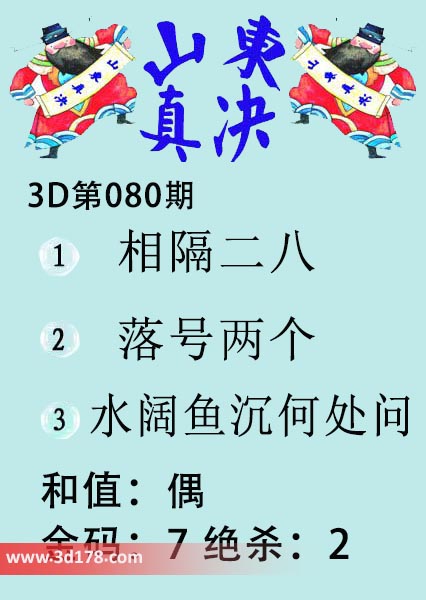 福彩3d第20080期山东真诀图如下所示: