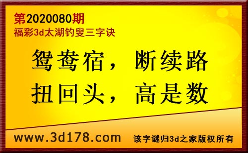 3d第20080太湖字谜:鸳鸯宿,断续路,扭回头,高是数