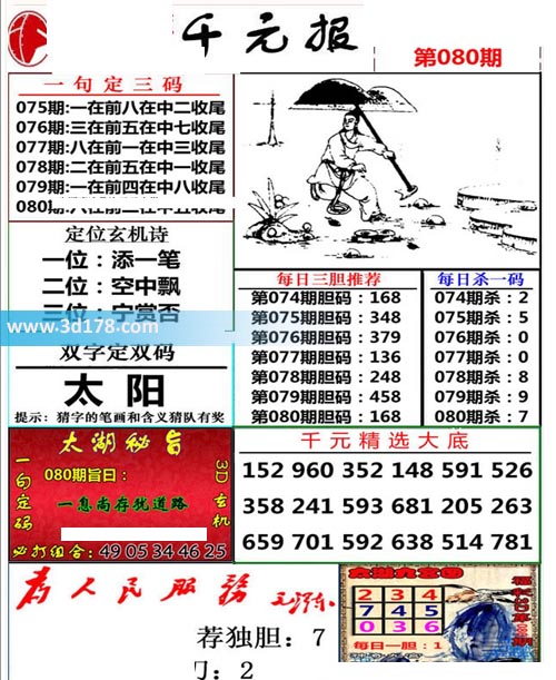 福彩3d第2020080期布衣千元报图详情分析如下: