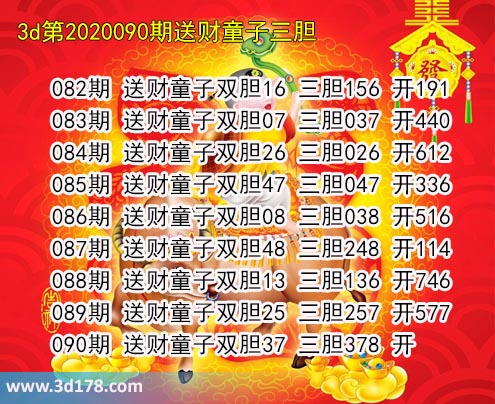 下面我们一起来回顾一下3d之家胆码图送财童子三胆近期推荐详情: