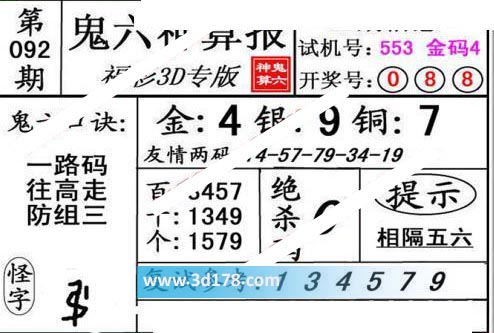 3d第20092期鬼六神算报为您推荐鬼六口诀:
