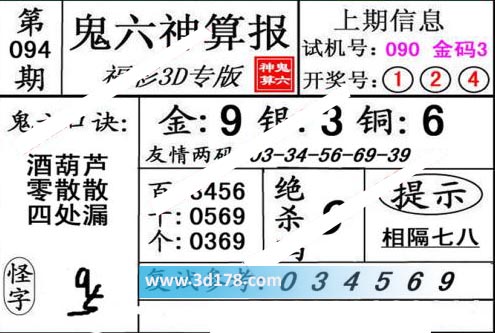 3d第20094期鬼六神算报为您推荐鬼六口诀: