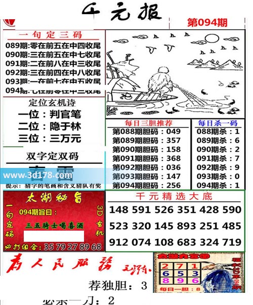福彩3d第2020094期布衣千元报图详情分析如下: