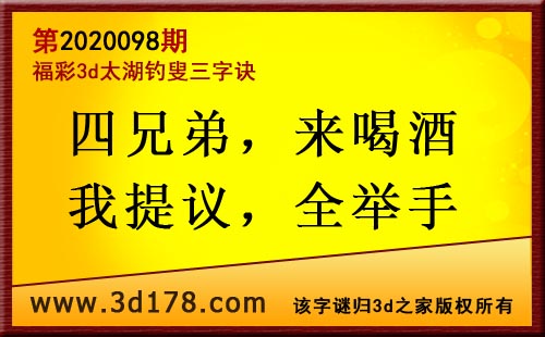 3d第20098太湖字谜:四兄弟,来喝酒,我提议,全举手