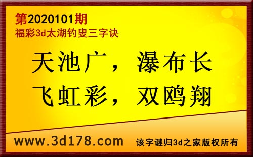 3d第20101太湖字谜:天池广,瀑布长,飞虹彩,双鸥翔
