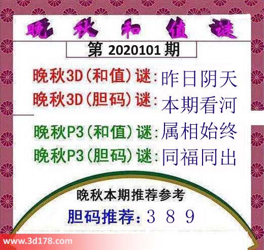 晚秋3D(胆码)谜:本期看河